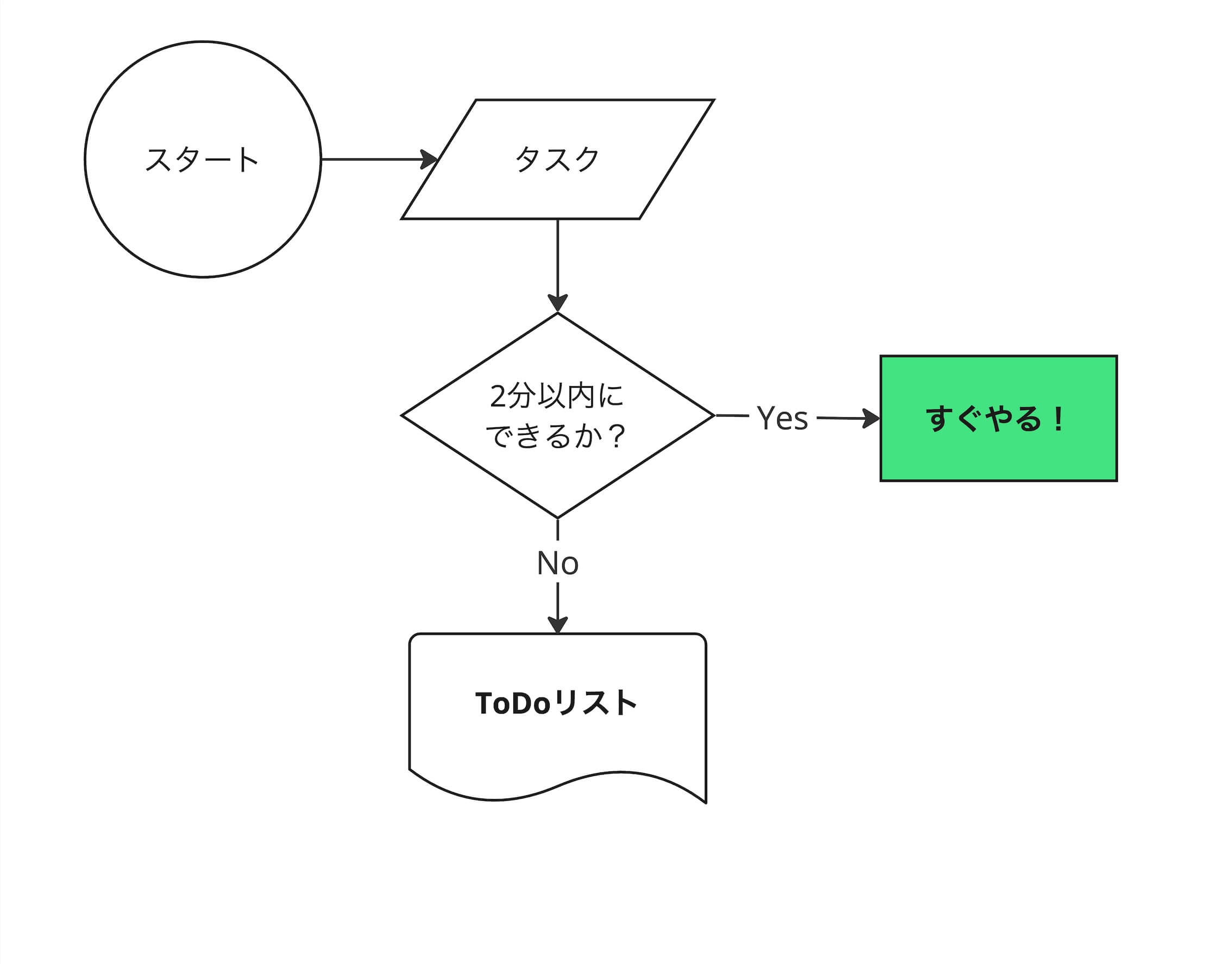 なにも難しいことはありません。2分以内で終わるタスクを貯め続けないということですね。例えば、メールの返信ですが、受け取ったことと、返信することを分ければ、受け取ったことを返信するのはすぐにできます。「◯◯拝受しました。確認します。」この程度で返信すれば2分以内で終わります。ほかには社内アンケートの回答など、集中して回答すれば5分以上はかかりません。