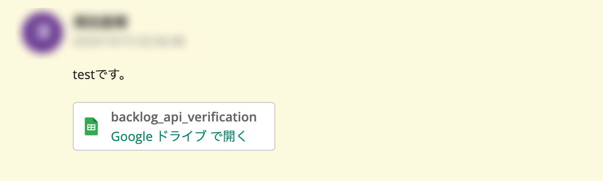 コメントした結果、Google ドライブへのリンクと分かるような表現で表示されます。このリンクをタップすると、ファイルが表示されます。